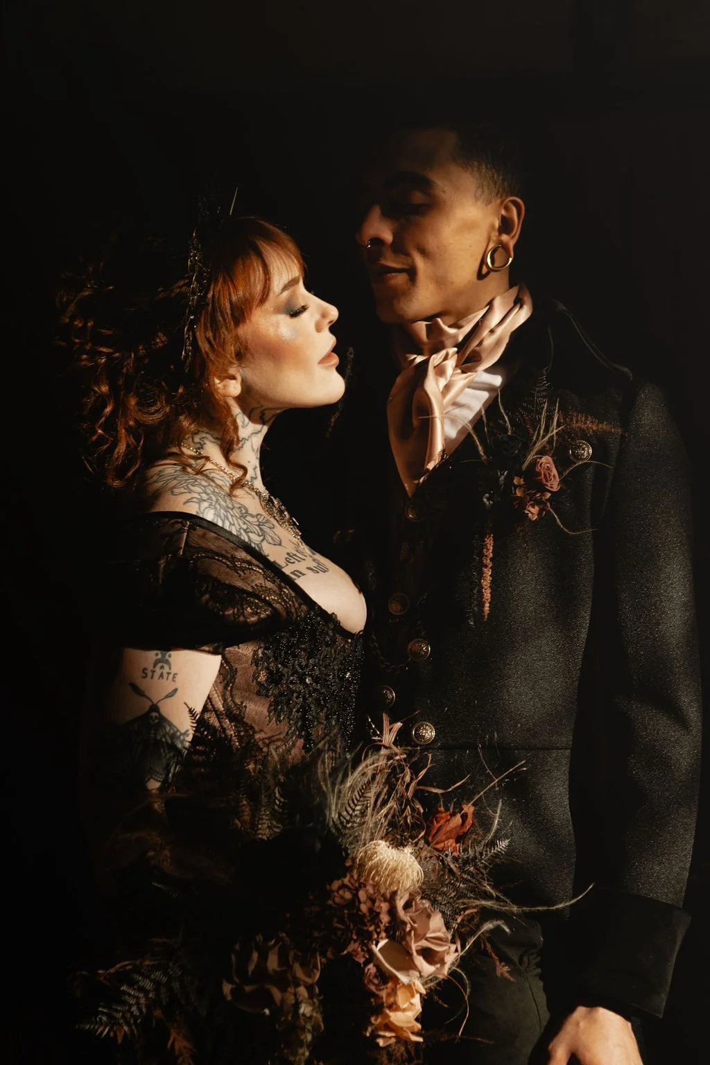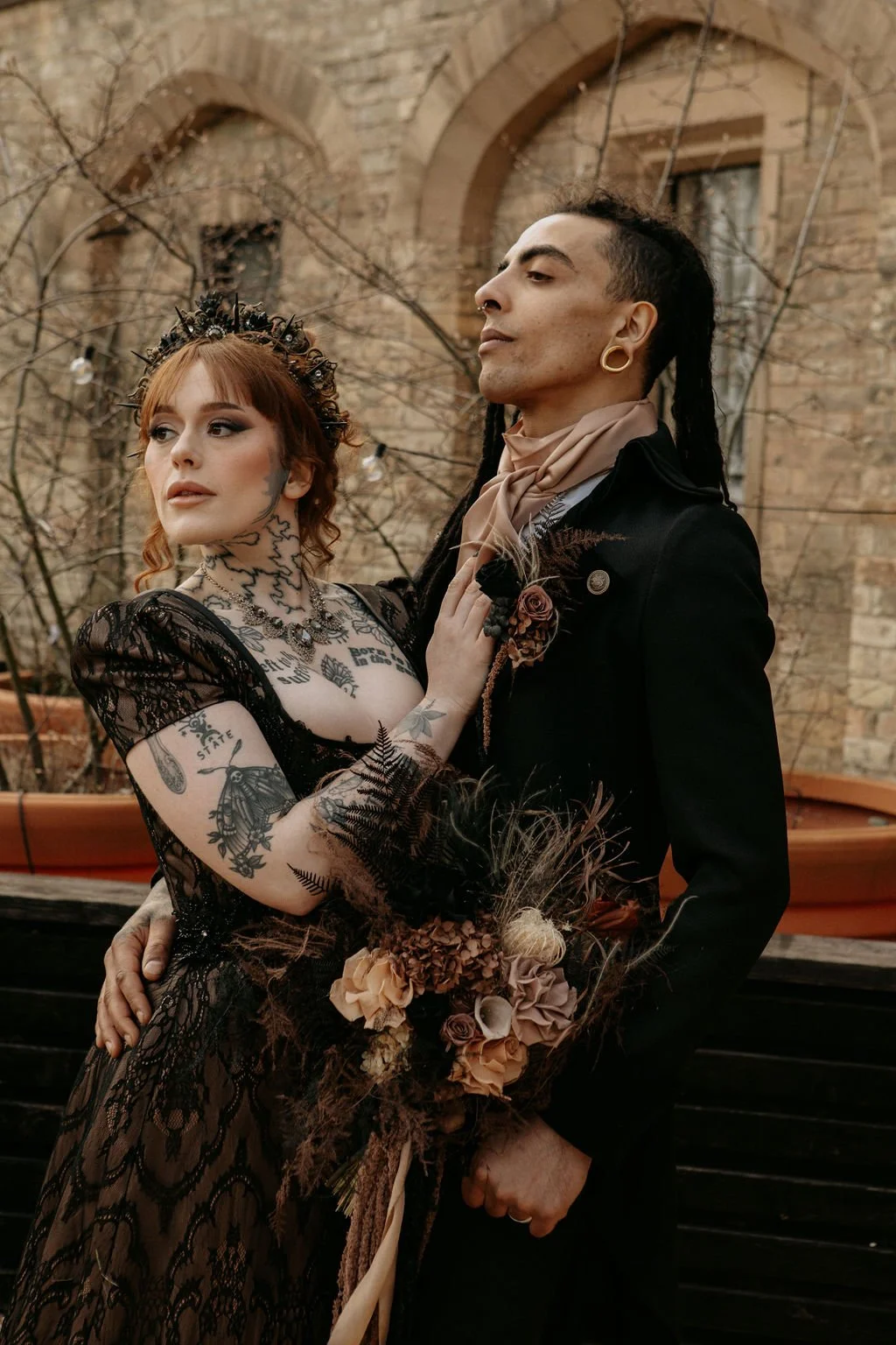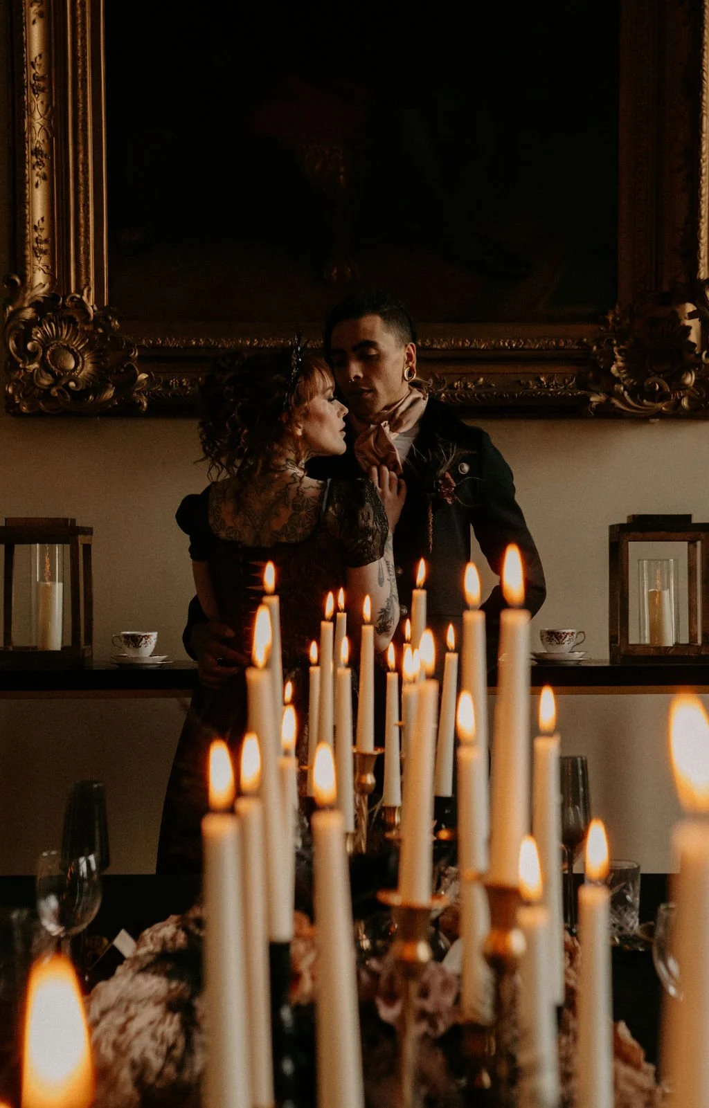 This shoot was designed to show how period inspired styling can be adapted for alternative weddings without tipping into costume. Elevated rather than theatrical for theatre’s sake. Romantic without being saccharine. Dark without losing softness.