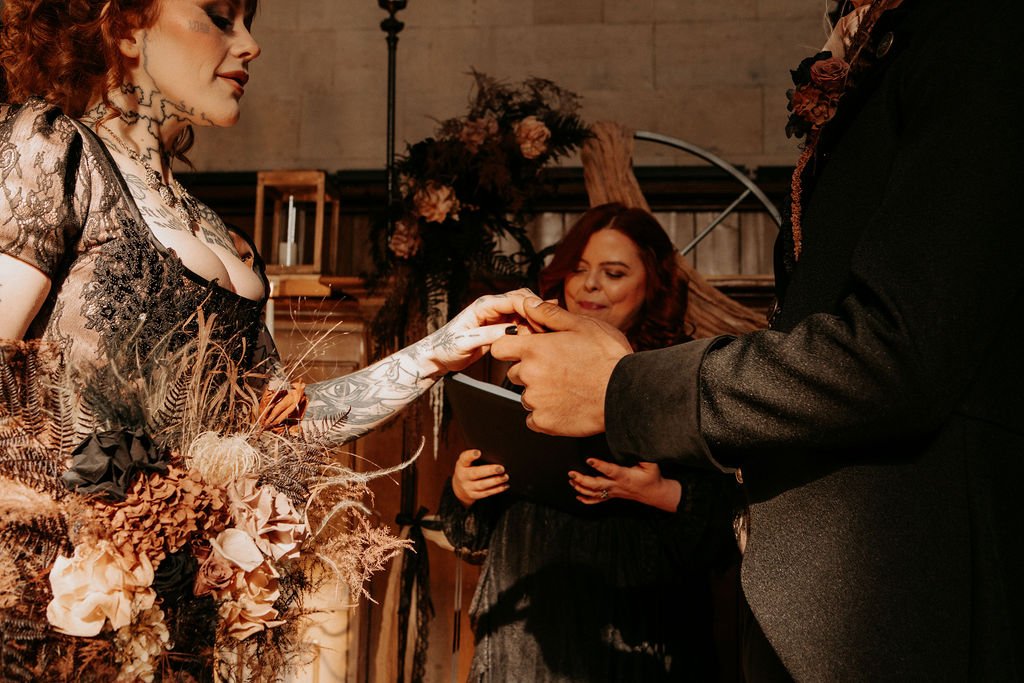 The ceremony elements were led by Electric Joy Ceremonies, who brought emotion, theatrical pacing and alternative romance into the heart of the story.